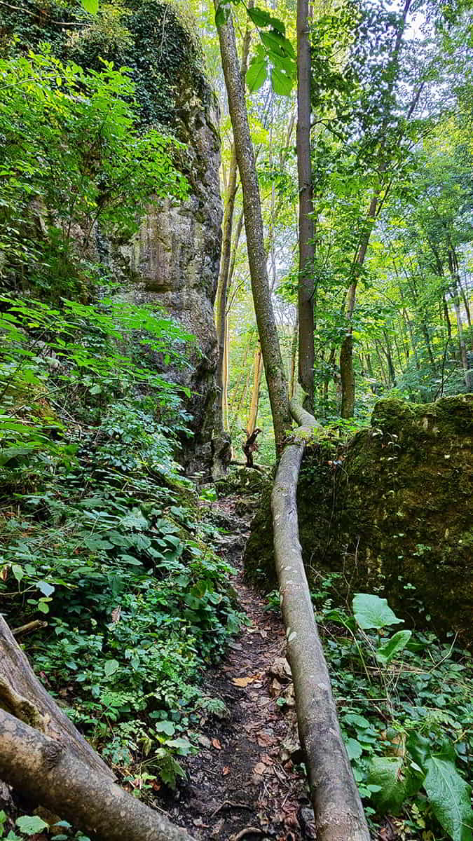 Ahogy elmerültünk a szűk hasadékban, a hely szépsége azonnal magával ragadott minket. Az ösvényen szorosan a sziklafalhoz tapadva kellett haladnunk. A kidőlt fák és az ágak miatt nem is lehetett gyorsan menni – de nem is akartunk! Folyamatosan szívtuk magunkba a látványt.