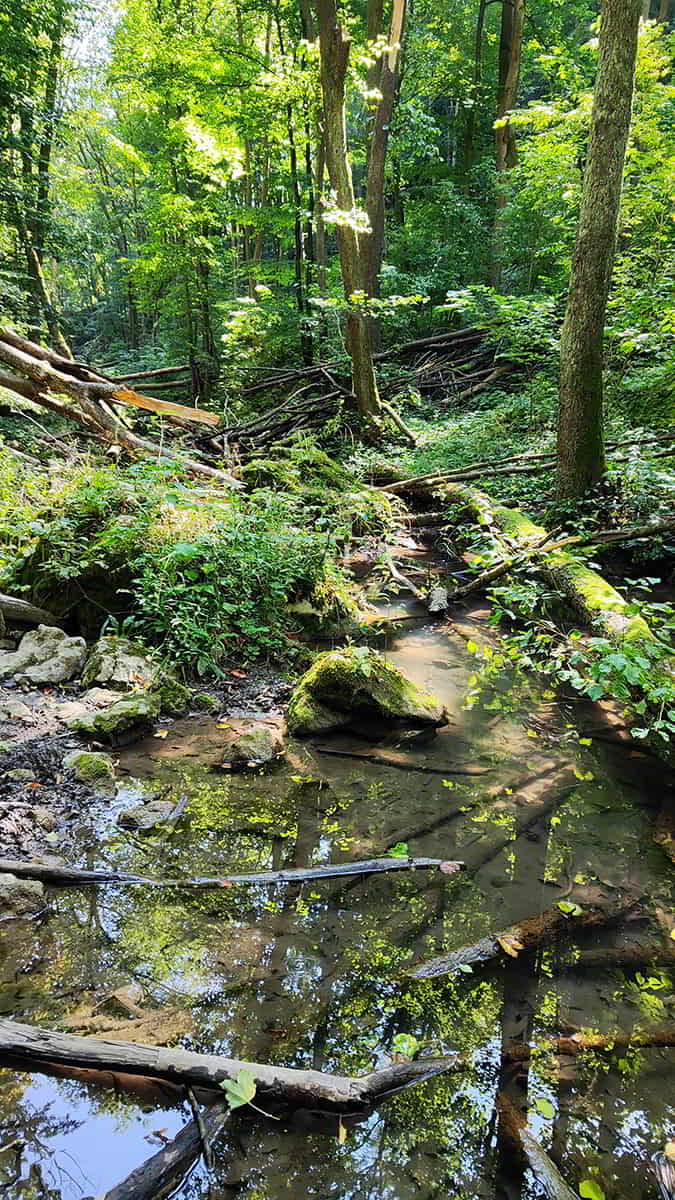 A zöld jelzés innentől a patak hűs, kanyargó vonalát követte. Bár a Bakonyban gyakran kell küzdeni a megáradt vízzel és a kiterjedt sárral, sőt, néhol az átkelés igazi fejtörést okoz, most semmi sem gátolta a haladásunkat.