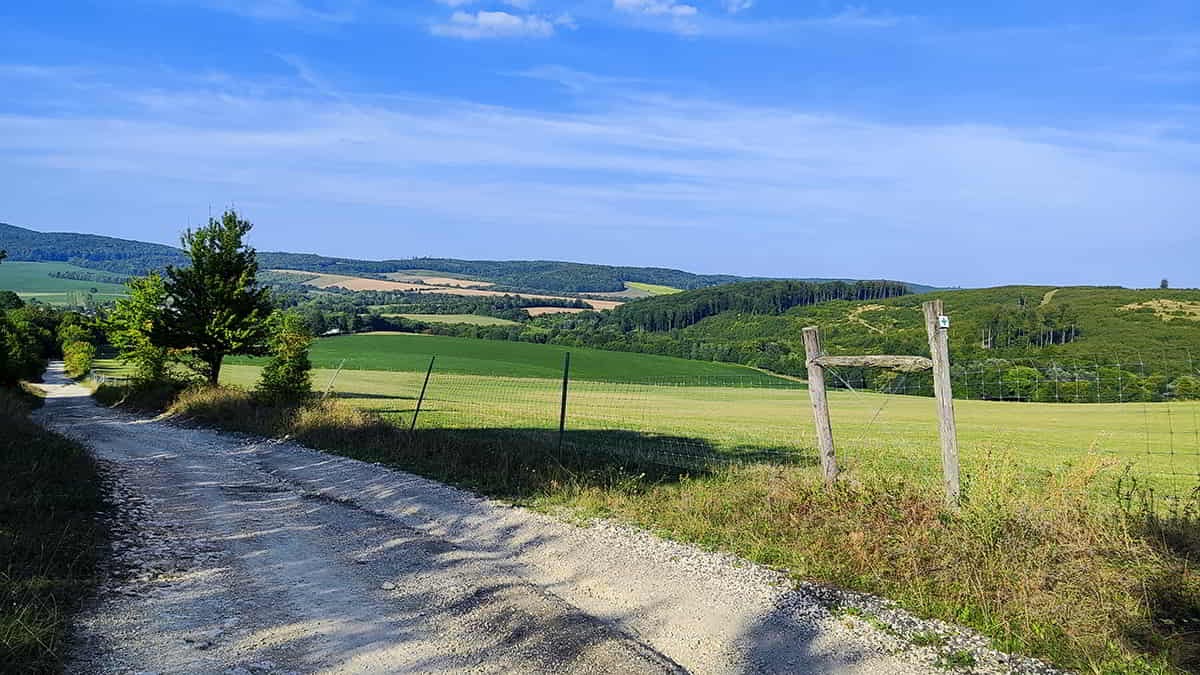 Egy nagyjából egy kilométeres, árnyék nélküli szakasz várt ránk. A hőség könyörtelen volt: szinte elpárologtunk a napon, mire végre elértük az erdő peremét, és bevethettük magunkat a Fehér-kő-árok sűrűjébe.