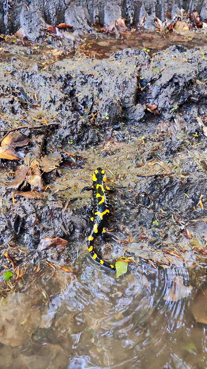Ám a hegy így a végére két felejthetetlen jutalmat is adott vígasztalásul. Először is, megpillanthattuk a méltán híres, élénksárga foltos szalamandrát, e titokzatos erdőlakót. Majd, mintegy utolsó gesztusként, a fellegek közül kibújó nap drámai fényekkel festette át a tájat: sugarai gőzölögve szárították fel az aszfaltot, fenséges látvánnyal koronázva meg a túra lezárását.